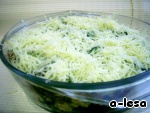 Сверху - кабачки и посыпать обильно тёртым сыром.