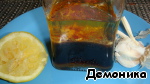 Все составляющие заправки смешать в той ёмкости, в которой вы будете её хранить. Из лимона выжать сок. Чеснок выдавить через пресс. Имбирь мелко нарезать. Добавить туда же. Энергично взболтать. Заправка станет густой, мутной и однородной. А запах... Хватит её надолго. Стоит без проблем, даже без холодильника.