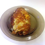 Мясо опускаем в взбитое яйцо и выкладываем сверху на картофель