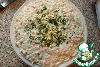 Заправляем майонезом (его много не нужно - вместе с помидорами стекает).