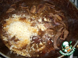 Через минут 20-30 наливаем ещё немного воды и добавляем грибы. Тушим минут 10 и добавляем сливки.
