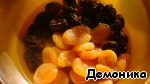 Замочить курагу и чернослив в тёплой воде на час. Промыть.