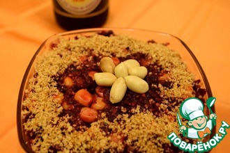 Правда мне пришлось лук заменить на зеленый ( брала на работу ) и добавила кедровые орешки .