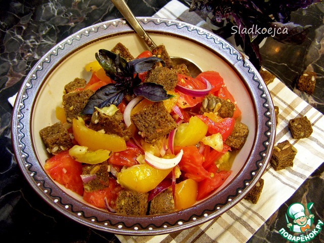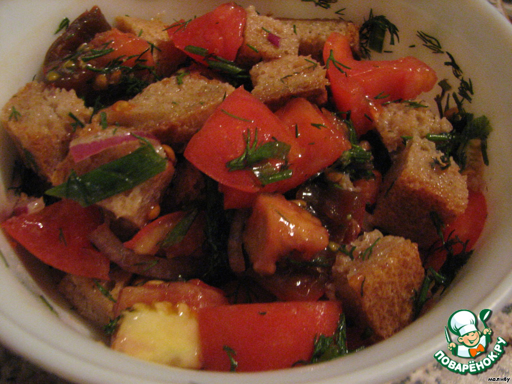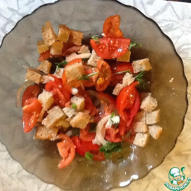 Рецепт «Салат из ржаного хлеба с помидорами»: