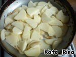 Картофель нарезать "полукольцами" и обжарить до полуготовности (минут 10), я обжаривала на сале.