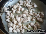 Филе нарезать небольшими кусочками, посолить, поперчить и тоже обжарить.
