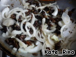 Лук порезать полукольцами и обжарить вместе с грибами.