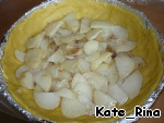 Вместо пергаментной бумаги я использовала фольгу. Форму выстелить тестом. Сделать бортики.