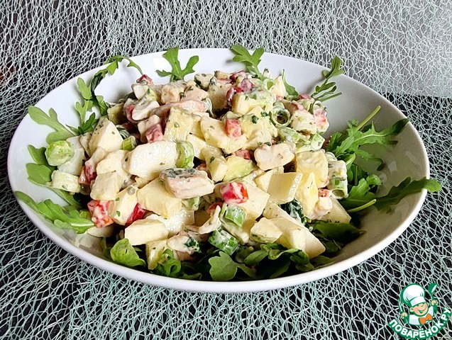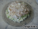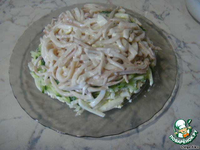Легкий, хрустящий, для любителей сочетаний фьюжн. Яблоко придает акцент этому салату, очень удачное на мой взгляд сочетание мягкого (кальмар, яйцо) и хрустящего! Попробуйте!Очень интересный салатик! Я считала, что придумала его сама ))) А оказалось, что его почти все уже знают, так что на авторство не претендую ))