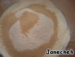 Добавим просеянную муку и сухие дрожжи.