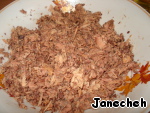 Займемся начинкой: с тунца сольем жидкость и разомнем вилкой.