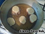 На сковороду наливаем подсолнечное масло и ждем, пока оно хорошо нагреется. Затем ложкой выкладываем тесто (шарики не должны касаться дна сковороды, и если тесто жидкое, можно добавить немного муки). Шарики обжариваем с обеих сторон на слабом огне.