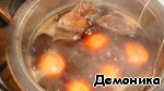 Положить туда оббитые яйца и варить на небольшом огне 40 минут.