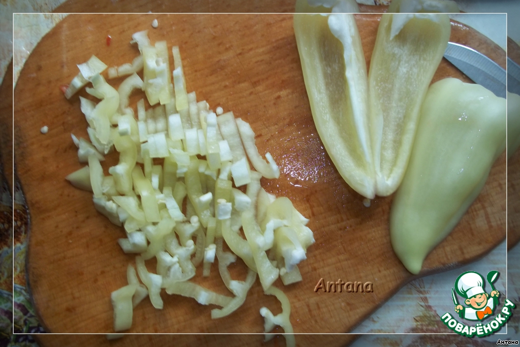 Пока готовится мясо, чистим и нарезаем соломкой перец.
