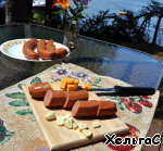 В каждый кусочек, сделав надрез, положим чеснок и сыр.