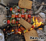 И поджарим на огне, вместе с черным хлебом и овощами.