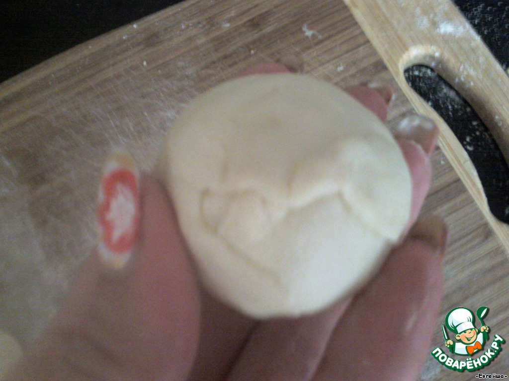 Готовый шарик. Я его ещё между ладошек покрутила, чтобы совсем быть уверенной, что начинка останется внутри.