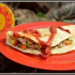 Положите между двумя лепeшками тортильяс начинку, посыпьте еe сыром и обжарьте на сливочном масле с двух сторон - получите КЕСАДИЛЬЮ. Например, вот такой вариант - https://www.povarenok.ru/recipes/show/58891/.