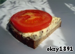 Бутерброд на ржаном хлебе с яичным дипом и помидором.