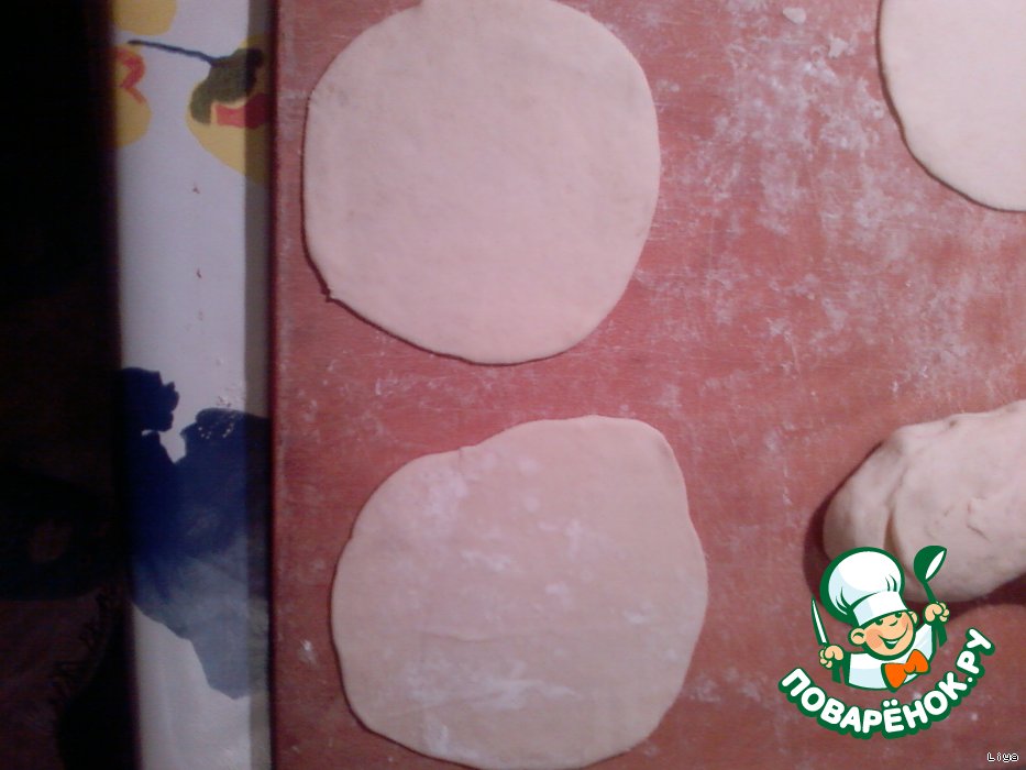 3. Делим тесто на небольшие шарики и раскатываем их как лепешки.