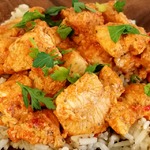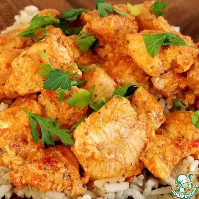 Сочная курочка, перед тушением промаринованная и тушeная в этом же маринаде. Готовится очень быстро.