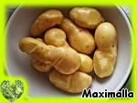Нарезаем пополам. Помещаем в кипящую воду и варим 10 мин. до полуготовности. В конце варки водичку присолить. Воду сливаем и картофель охлаждаем.