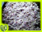 Начнем с того, что дольше всего готовится перед запеканием. Это маринованный лук. Итак, лучок чистим, моем, нарезаем полукольцами, маринуем под закрытой крышкой (лучше всего в баночке) с уксусом, 1 ч.л. сахара и 1 ч.л. соли в течение 40 минут.