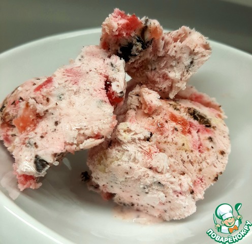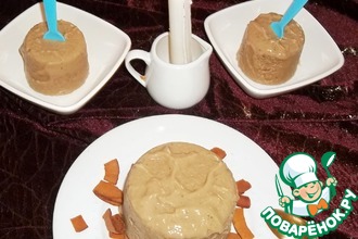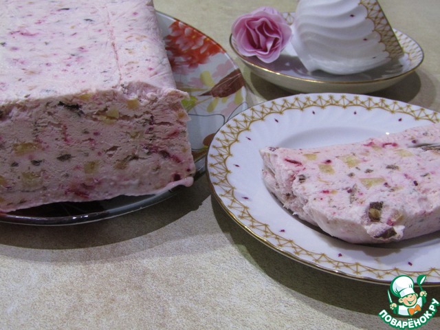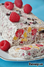 Выложить в выстланную пищевой пленкой прямоугольную форму емкостью 1,2 л. Поместить в морозильную камеру на ночь. За 10 мин. до подачи погрузить форму на секундочку в горячую воду и опрокинуть на блюдо.