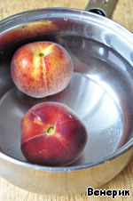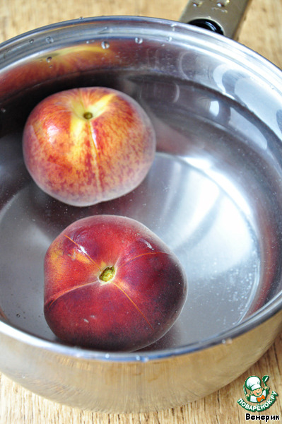 Персики вымыть, кожицу надрезать крестообразно. Погрузить в кипящую воду на несколько секунд, затем снять кожицу