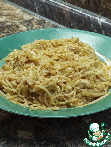 Опять я к вам с макаронами)), сытное блюдо с оригинальным вкусом от моей подруги Ани.