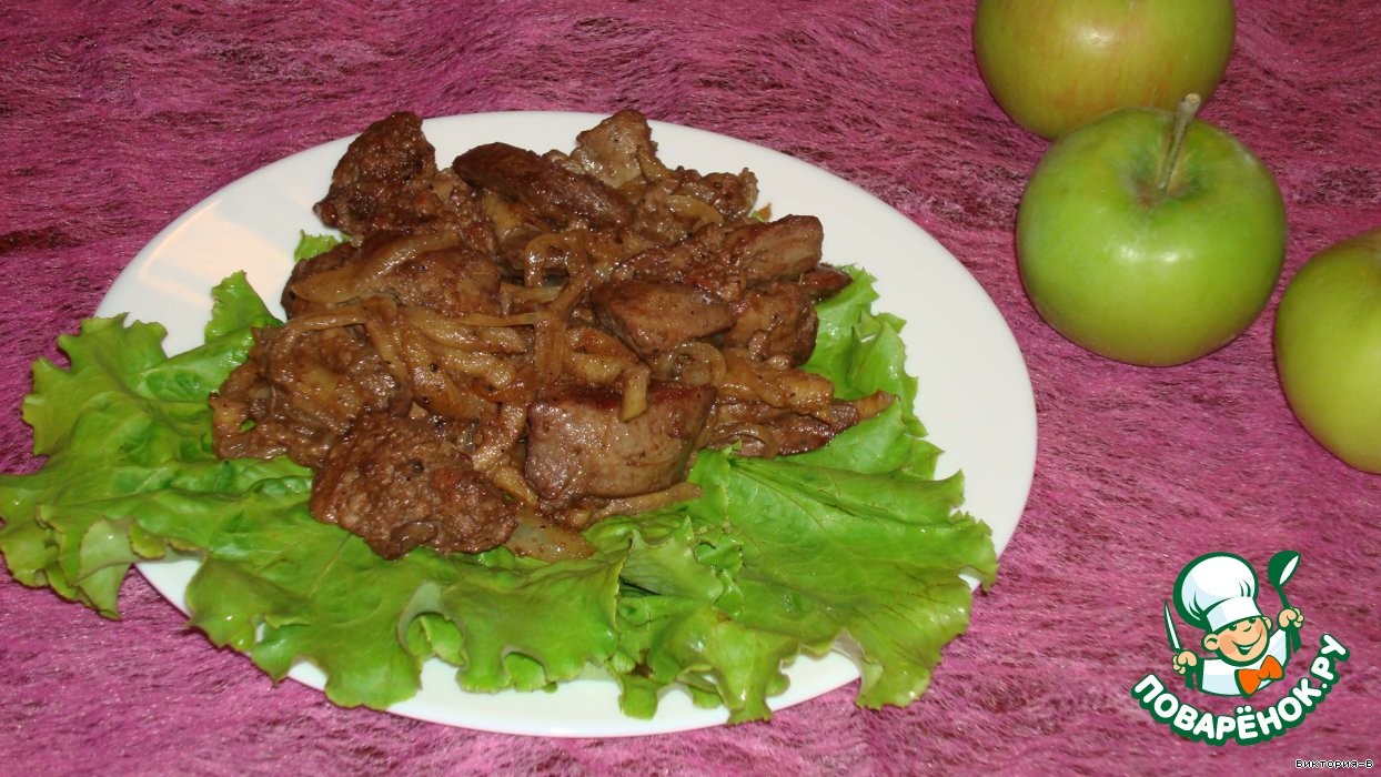 Печень обсушить, удалить плёнки, нарезать кусочками, добавить к луку