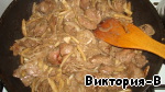 Печень обсушить, удалить плёнки, нарезать кусочками, добавить к луку