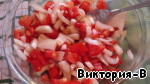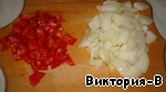 Помидор нарезать кубиками, лук четвертькольцами