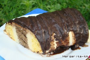 или можно полить шоколадной глазурью (мы готовили такую: 200г пудры, 2 ст.л. молока, 3 ст.л. какао и 100г масла смешать и сварить на медленном огне: