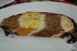 А самое интересное в этом пирожном - попробовать догадаться, как оно приготовлено, ведь подаeтся к столу уже нарезанное на порции)). А секрет прост: нарезать порции наискосок)).