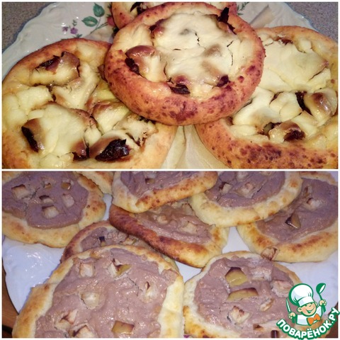 В середине каждой лепёшки стаканом делаем углубление и заполняем кремовой начинкой.
