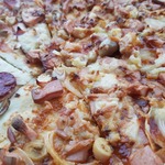 а потом в одном углу — шинку, в другом — грибы, в третьем — грибы с шинкой, посередине — помидоры, лук и шинку, еще кусочек с луком, грибами и помидорами…