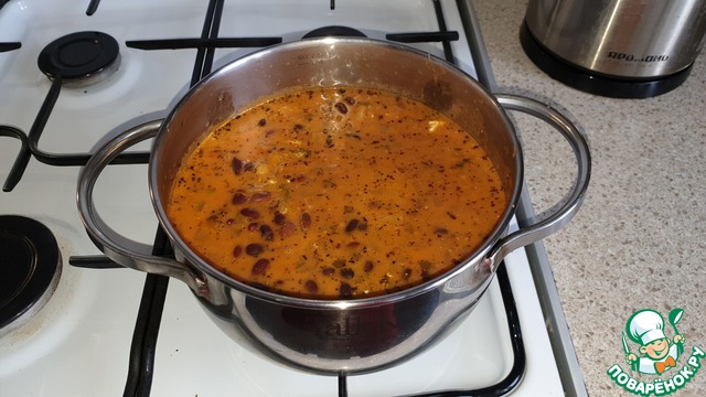 Сухую фасоль замочить на ночь в холодной воде (чтобы вода покрывала фасоль на 3-4 см)