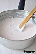 Соединить сливки, молоко, сахар, поставить смесь на медленный огонь и довести до кипения. Снять с огня, ввести желатин, хорошо перемешать, чтобы весь желатин разошелся. Добавить клубничное пюре и ещё раз тщательно перемешать.