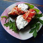 Рецепт «Запеченные баклажаны под сметанным соусом и сальсой»: