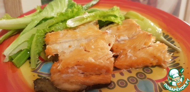 в готовом виде мякоть рыбы легко отделяется и при подаче на стол тоже красиво.