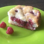 Выливаем сверху оставшееся тесто и на него малину. Слегка вдавливаем ягоды в тесто.