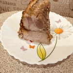Запах по кухне расходится обалденный. Через час достаем наш карбонадик и АККУРАТНО разворачиваем его. Пергамент ни в коем случае не выбрасывайте. Сейчас оно как будто в соленом бульоне, но после того, как полежит в холодильнике именно в этом пергаменте, бульон превращается в умопомрачительную и вкуснющую "желешку", вместо кетчупа под мяско =))) А горячее мы съедаем с сацебели. Приятного аппетита =)
