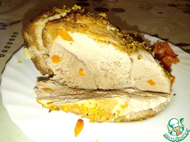 5. И потом обильно обсыпаем нашу свинину зернами горчицы!!!