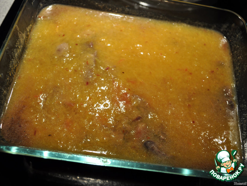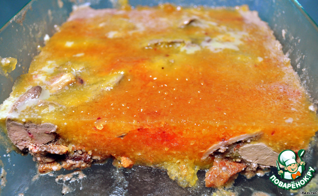 Рецепт «Печень куриная в желе из персиков»: