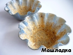 Формочки смазываем маслом и посыпаем панировочными сухарями (можно обойтись без сухарей).