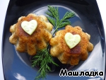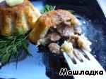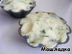 Выкладываем картофельное пюре, распределяем его по дну и стенкам формочек.