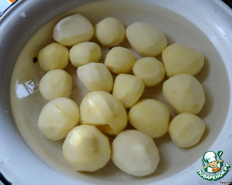 Очистим картофель. Картофелины покрупнее разрежем пополам.