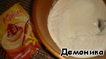 2. Смешать муку, сухое молоко и порошок заварного крема. Судя по составляющим заварного крема, его вполне можно заменить "Малюткой" или другим детским порошковым питанием. -