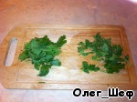 Филе солим, перчим по вкусу, добавляем нарезанный чеснок, пару веточек кинзы, ложку сливочного масла.